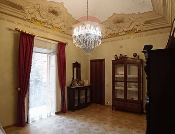 Dall’ingresso principale su Via Mazzini si accede da scala interna in muratura e marmo al 1°primo piano, porta di ingresso blindata, disimpegno spazioso, salotto con balcone con affaccio su via Mazzini, alzando lo sguardo, il salone regala un dettaglio unico: splendidi affreschi originali dell’epoca sul soffitto.