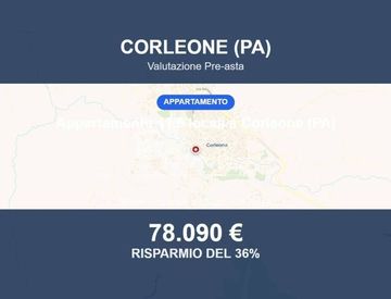 Appartamento in asta a Corleone (PA) – Cortile Poma 1 Appartamento situato a Corleone (PA) in Cortile Poma, 1, all'interno di un edificio antecedente al 1967. La zona è residenziale e ben servita. Superficie e distribuzione interna L'appartamento si sviluppa su due livelli, primo e secondo, per una superficie convenzionale di 220,62 mq. Al piano primo si trova la zona notte con due camere da letto, due bagni, tre ripostigli, una camera cieca, ingresso,...