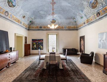 Il vestibolo introduce a due grandi saloni di rappresentanza che conservano splendidi soffitti a volta decorati d’epoca. In questo piano si trovano anche uno studio d’artista, un’ulteriore stanza predisposta per essere adibita a cucina e un bagno. Una scala in pietra pece conduce al secondo piano, caratterizzato da due camere da letto, un salone e un ulteriore bagno, con pavimenti d’epoca originali.