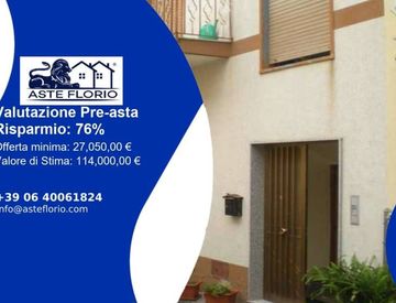 Riferimento: 4504775 Via Marassà 20, 94010 Nissoria Enna Lotto: LOTTO UNICO 1. Diritto di proprietà 1/1 Immobile adibito a civile abitazione sito in Nissoria alla Via Marassà n. 20, censito al Catasto Fabbricati del Comune di Nissoria al Foglio 47 part. 1597, Sub 1, Cat. A/4, Vani 8, Piano T-l-2, Rendita 206,58; classe energetica “G - 2. Diritto di proprietà 1/1 Vano autorimessa sito in Nissoria alla Via Rinaldi n. 1, censito al Catasto Fabbricati...