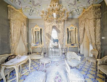 Al primo piano dello stabile si trova l’appartamento padronale composto da un elegante ingresso che disimpegna la casa, la parte destra ospita una grande cucina, una camera adibita a dispensa e un ripostiglio; dal corridoio si accede anche alla sala da pranzo che si affaccia su un grande terrazzo privato.
