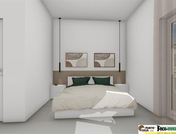L' immobile è composto da un comodo ingresso che conduce ad una spaziosa zona living su cui si apre un angolo cottura separato da doppia porta scrigno, una camera matrimoniale ed un ampio balcone angolare di circa 30 mq.
