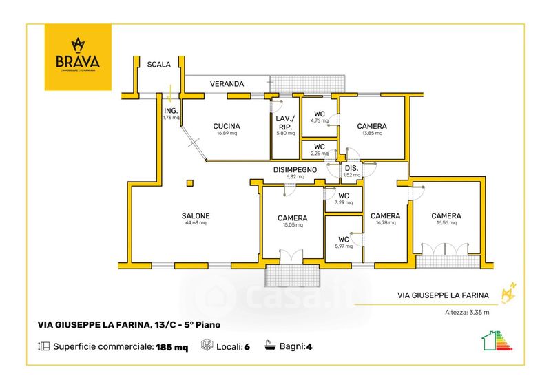 Appartamento in vendita Via Giuseppe la Farina 13, Palermo