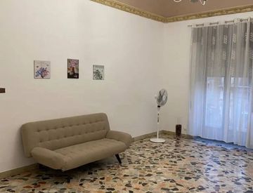 L'appartamento si trova al primo piano di due piani più la terrazza è così composto: salone, cucinotto, balcino, una camere da letto( ma ricavabile una seconda cosi come è stato fatto) e un bagno. La casa è dotata di aria condizionata e