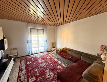 L’ingresso si apre su un disimpegno che conduce alla zona giorno, composta da un ampio e luminoso salone con balcone angolare, ideale per garantire luce e sfogo esterno, e da una cucina abitabile dotata di veranda, attualmente utilizzata come zona lavanderia.