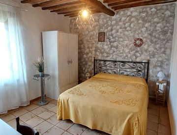Asciano, vicino ai servizi principali, appena fuori dal centro storico, appartamento con ingresso singolo da scale privata interna, al piano primo, in buonissime condizioni, di 80 mq circa su due livelli composto da: ingresso con ampio disimpegno con grande camino e accesso ad terrazzino, soggiorno, wc, cucina abitabile e ripostiglio, piano superiore due camere matrimoniali e bagno finestrato.
