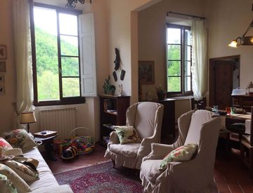 Borgo San Lorenzo pressi, vendita in Mugello, a 20 km da Firenze vendesi in posizione panoramica piano nobile di antica villa dell' 800 la cui ristrutturazione ha mantenuto le caratteristiche originali della proprietà, 5 vani, al PT ingresso indipendente dal proprio giardino, P1° soggiorno, sala pranzo, cucina abitabile, camera con caminetto originale, studio, guardaroba, servizio, (possibilità di realizzare ulteriore camera), accesso alla soffitta...