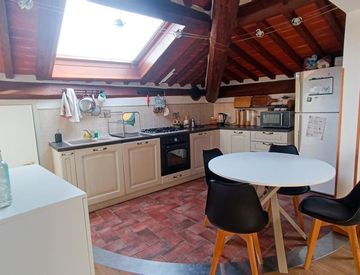 L'appartamento, posto al piano terzo senza ascensore, ha una superficie di ca. 75 mq oltre ad un ampia soffitta ad uso ripostiglio.