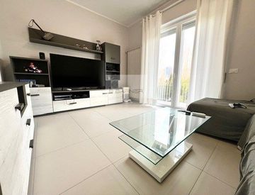 ingresso in disimpegno, salone luminoso, cucina abitabile, bagno finestrato con doccia. Le camere da letto sono 2, entrambe matrimoniali.