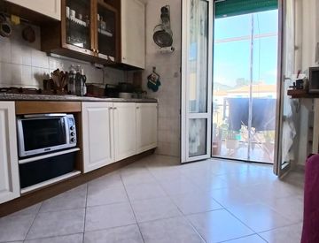 Soggiorno con Cucina: Un ambiente conviviale che si affaccia direttamente sul balcone, ideale per godersi la brezza pomeridiana.