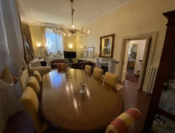 In zona centrale, comoda ai servizi ma riservata; VENDIAMO importante e ampio APPARTAMENTO in palazzo storico, nell' ottocento sede dell' ambasciata Americana e successivamente casa della famiglia americana Torrey-Franklin,. L'abitazione di circa 300mq, finemente ristrutturata, si dispone su due piani, serviti da ampia e scenografica SCALINATA in marmo, soffitti affrescati originali, pavimenti intarsiati in marmo e parquet nella zone notte. TERRAZZO...