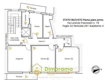 appartamento posto al piano primo con ascensore, a sinistra del ballatoio per chi sale, composto da pranzo con cucinotto adiacente, tre vani, ingresso, bagno e ripostiglio per una superficie complessiva di mq. 81,02 al netto delle murature interne ed esterne, oltre a due terrazze una sul fronte del fabbricato e l'altra sul retro della superficie complessiva di mq. 9,69 ed un ripostiglio della superficie di mq. 2,59 posto sul lastrico solare del fabbricato....