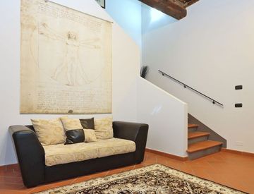 Entrando, al piano primo, veniamo accolti da un ampio vano d'ingresso con servizio; al secondo piano, collegato da una scala interna, si sviluppa la grande e luminosa zona living con soggiorno e cucina open space, un'ampia camera da letto ed un bagno. L'appartamento è caratterizzato da grandi finestre che assicurano un'ottima luminosità naturale.