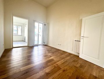 - posa di nuova pavimentazione in parquet di rovere in tutta la casa, ad eccezione di zona cucina e loggia con posa di grès porcellanato.