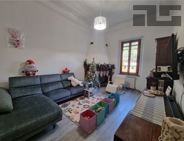 Compiobbi, in centro del paese, vendiamo in villino bifamiliare, appartamento posto al piano primo ed ultimo senza ascensore e senza spese di condominio. L'appartamento di circa 105 mq e' composto da ingresso, cucina abitabile, ampio soggiorno con camino, due camere matrimoniali, uno studio o piccola terza camera, un bagno grande finestrato, ripostiglio e sottotetto con accesso da botola interna. Completa la proprieta' un giardino di circa 80 mq staccato...