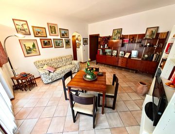 L’immobile si apre, sulla sinistra, su un accogliente soggiorno luminoso con accesso diretto al resede e sulla destra alla cucina abitabile, anch’essa con uscita sul resede, e al primo ripostiglio.