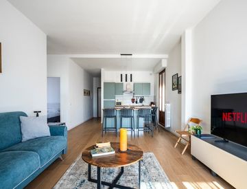 L'immobile, frutto di un accurata e recente ristrutturazione, viene locato completamente ammobiliato ed è composto da ingresso su ampio disimpegno, grande zona giorno doppia con angolo cottura, due camere da letto matrimoniali, doppi servizi finestrati, ampie terrazze abitabili.