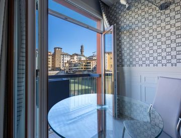 Bilocale con SPETTACOLARE balcone con affacci su Arno e Ponte Vecchio, si compone di SOGGIORNO con ANGOLO COTTURA, CAMERA, BAGNO.