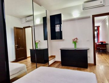 - in fondo abbiamo la camera con letto matrimoniale e ampio guardaroba