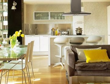 Luminoso soggiorno con angolo cottura