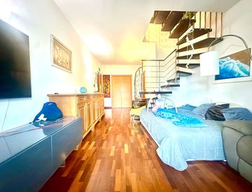 Dalla zona giorno, una comoda ed elegante scala a chiocciola ci accompagna nella soffitta di 70 mq circa con altezze fino a 2.30 m dove è possibile usarla per qualsiasi utilizzo: una grande camera da letto con zona giochi dedicata, una zona studio o semplicemente una raffinata zona relax.