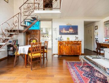 In un meraviglioso palazzo storico di recente ristrutturazione con ascensore, questo affascinante appartamento è composto da un ampio open space che si sviluppa su due livelli, collegati da un'elegante e caratteristica scala in pietra serena e ferro battuto.