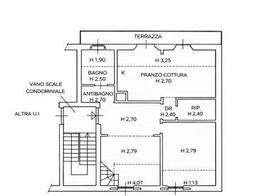 L'ingresso si apre su un ampio soggiorno dal quale poter accedere all'ampia cucina abitabile dotata di terrazzo tergale con pilozzo e caldaia.