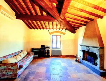 Prima grande camera con camino, attualmente utilizzata come seconda zona living