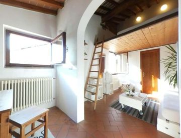 Attic studio in Santa Croce / Sant'Ambrogio area. Very bright and quiet, with view of monuments. Composed of: dining/study room day room with double sofa bed sleeping area in mezzanine 2 beds independent kitchenette fully-equipped: fridge, freezer, microwave, washing machine bathroom with shower. Independent heating, air conditioning, fast Wi-Fi fibra. The apartment is also equipped with towels, sheets, iron, hairdryer, vacuum cleaner etc.