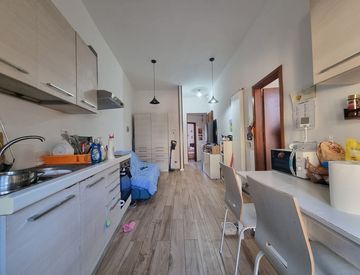 L'unità immobiliare è composta da ingresso disimpegno, entrando sulla sinistra si accede al soggiorno con angolo cottura, tramite la porta finestra si accede al balcone. Infine il servizio ampio e finestrato.