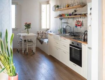 L’ingresso si apre su un soggiorno accogliente e luminoso, arricchito da due punti luce che donano profondità e calore all’ambiente. La cucina abitabile, ampia e ariosa, gode di splendidi affacci e rappresenta uno degli spazi più piacevoli della casa. Il bagno, finestrato, è dotato di una moderna doccia walk‑in.