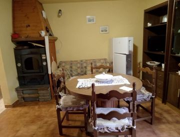 soggiorno con stufa a forno e con stufa a pellet, cucinotto, disimpegno, bagno e camera matrimoniale. Nel sottoscale è presente un comodo piccolo vano dove poter riporre i propri oggetti personali.