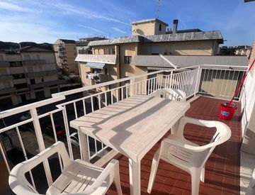 Fabbrimmobiliare è lieta di proporre in vendita appartamento trilocale posto all'ultimo piano di una palazzina di contenute dimensioni, a pochi passi dal mare e dalla pineta, con affaccio sul parco giochi, composto da soggiorno, cucinotto, camera matrimoniale, bagno e ampio balcone, oltre ad un lastrico solare di 52 mq perfetto per prendere il sole, cenare con gli amici ecc.