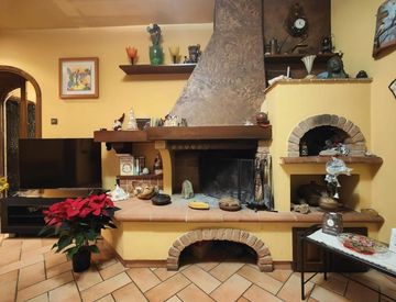 Ampia cucina-soggiorno con caminetto e forno