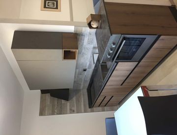 L’appartamento dispone di un luminoso salotto, una cucina completamente attrezzata con tutti gli elettrodomestici (frigorifero combinato, lavastoviglie, piano cottura a induzione e forno), e di una zona notte confortevole.