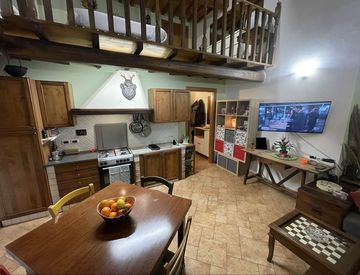 L'immobile, dotato di travi a vista, di 45 mq si compone di zona giorno con angolo cottura, bagno e scale che portano al piano soppalcato con zona notte.