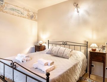 Accogliente e luminosa, con arredi tipici toscani. Una camera matrimoniale e una zona giorno con divano letto, TV, microonde, bollitore, tostapane e minibar. Bagno con doccia e aria condizionata.