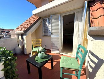 Marina di Massa, a ca 200 metri dal mare in posizione strategica e di sicuro interesse, comoda al mare ed al centro, in zona servita, Graziosa mansarda abitabile di comoda metratura, posta al secondo ed ultimo piano con accesso indipendente da scala esterna. Internamente si compone di ingresso, disimpegno, soggiorno con angolo cottura, camera matrimoniale, cameretta e bagno finestrato con box doccia. Ampia terrazza pranzabile perimetrale per tutto...