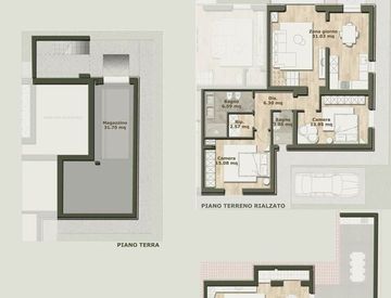 La casa si sviluppa su più livelli e presenta una distribuzione degli spazi pratica e ben organizzata. Il piano terreno rialzato ospita la zona abitativa principale, composta da soggiorno con cucina, due camere da letto, doppi servizi e un pratico ripostiglio.