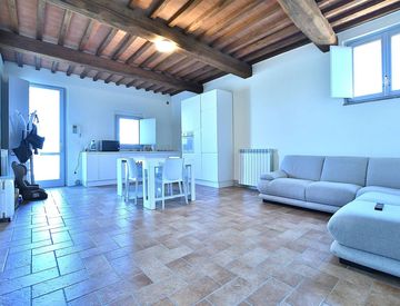 A ca. 7 km da Siena, in antico complesso colonico vendesi appartamento finemente ristrutturato al piano terra servito da giardino esclusivo di 700 mq. La ristrutturazione è stata effettuata conservando esternamente e internamente le caratteristiche tipiche toscane come le travi a vista in castagno e le mezzane in cotto. L'appartamento di 82 mq. è così suddiviso: ingresso, ampio e luminoso soggiorno con angolo cottura, camera matrimoniale, camera singola...
