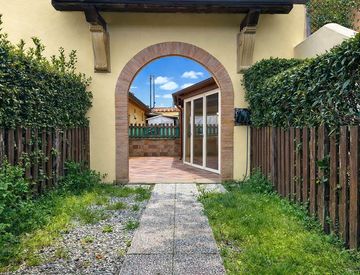 L’immobile è dotato di ingresso indipendente e si distingue per gli spazi esterni privati, con corte piastrellata in parte verandata, ideale per pranzi e cene all’aperto o per creare una zona relax riservata.