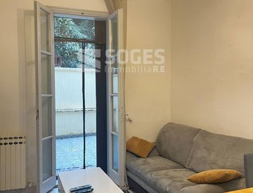 Dal soggiorno, si accede al resede esterno pavimentato, suddiviso in due zone, dove è presente anche una comoda lavanderia.