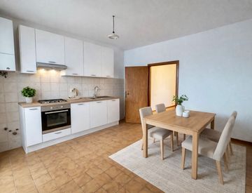 L'immobile, di 85 mq, è così composto: soggiorno con terrazza, cucina abitabile con balcone, disimpegno, due camere da letto matrimoniali (di cui una con terrazza), doppi servizi ed un comodo ripostiglio.