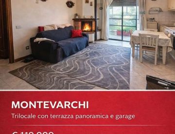 MONTEVARCHI luminoso appartamento anni 2000, della misura di 60mq posto all'ultimo piano di una palazzina con ascensore, si compone di: cucina pranzo soggiorno open space con ampia terrazza, disimpegno, camera matrimoniale, camera singola.