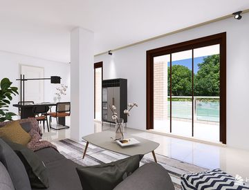 Immobiliare Poggio ti propone una nuova costruzione trifamiliare, chiavi in mano, con ingresso indipendente. L'appartamento dispone di un grazioso soggiorno, cucina, camera matrimoniale, camera singola e bagno con finestra.