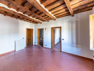 Riscaldamento Termo-singolo a metano con i radiatori in ghisa. Pavimentazione in cotto, travi e mezzane a vista. Infissi e persiane in legno.