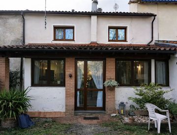 Terratetto in Via Puntale 128, Ponsacco, disposto su due livelli (piano terra e primo) e composto da soggiorno con camino, cucina, più ambienti accessori, tre camere, bagno, ampliamento con ulteriori spazi abitativi, giardino privato e terreno agricolo.