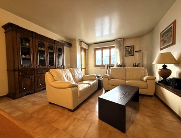 L'immobile si presenta in buone condizioni generali, luminosissimo e ben tenuto, si compone di ingresso, salone, cucina abitabile con tinello e cucinotto, tre camere di cui due matrimoniali e una cameretta, doppi servizi, ripostiglio, due ampi balconi e grande garage di circa 24 mq.