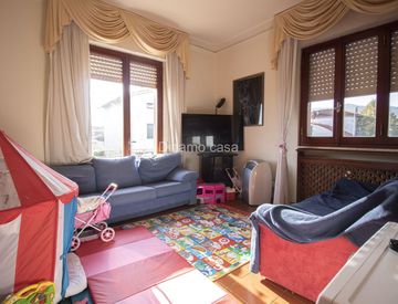 L'immobile, posto al primo piano di due senza ascensore, sviluppa una superficie di circa 90 mq; l'ingresso apre sul soggiorno, separato dalla cucina abitabile, la quale gode dell'affaccio sul balcone.