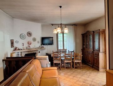 SERRE DI RAPOLANO VENDESI Piccolo terratetto di complessivi mq. 80 circa libero su 3 lati e composto da: scala di accesso indipendente per il piano primo dove si trova un salone con camino ventilato, camera matrimoniale, cucina con terrazzo panoramico e bagno finestrato. Scala interna di collegamento con il piano terreno dove si viluppano 2 vani accessori ed un garage. Annesso lastricato privato e resede privata.